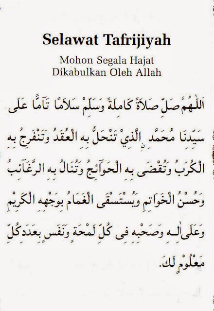 Tadi BW ke blog CIK INTAN BERLIAN , terbaca entry berkenaan SELAWAT TAFRIJIYAH. Tu yang nak kongsi pulak kat sini.. Sebagai panduan untuk diri saya jugak. Juga untuk anda semua..