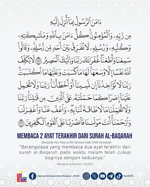 KELEBIHAN MEMBACA 2 AYAT TERAKHIR SURAH AL-BAQARAH